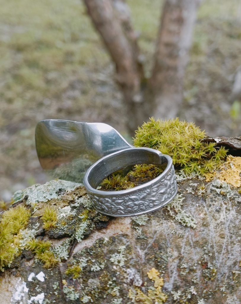 A farrier by trade, Stewart has lived off grid for over 15 years. His work reflects his Roma heritage, stemming from a lineage of metalworkers and travellers. He’s at his happiest whacking nails into metal or talking about anvils and vices (the tools, not the immoral habits!) Lately, he’s been transforming horse nails into delicate rings and pendants or practising pyrography on wooden spoons inspired by local folklore and the old ways.