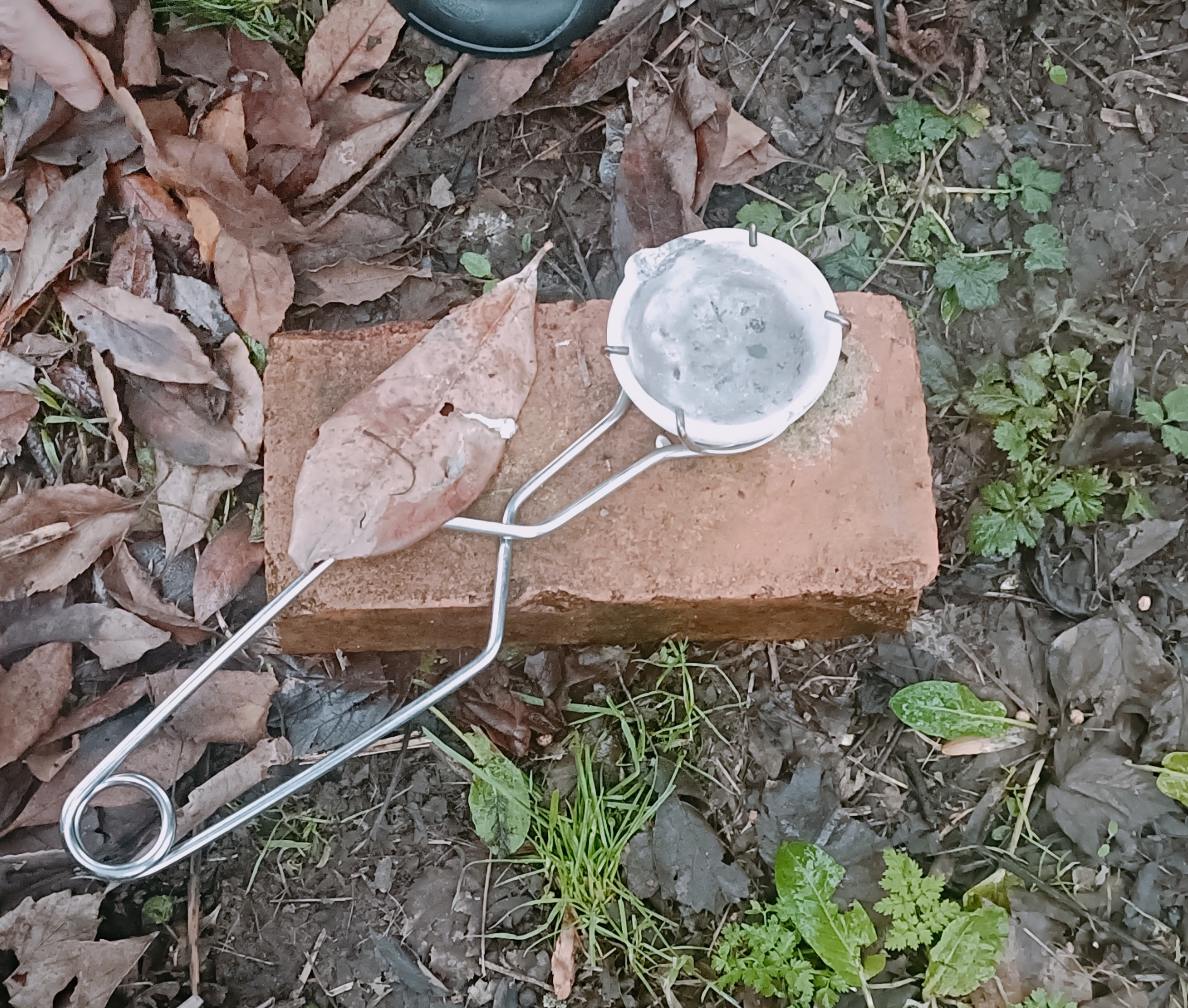 Important Note: They have to be dried. If you pour molten metal onto a wet fresh leaf, the water turns to steam instantly and the metal can “spit” or explode. (More on safety later!).